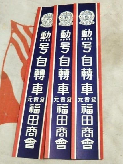 紙ラベル 短冊帯型 勲号自轉車 發賣元 福田商會 3枚セット